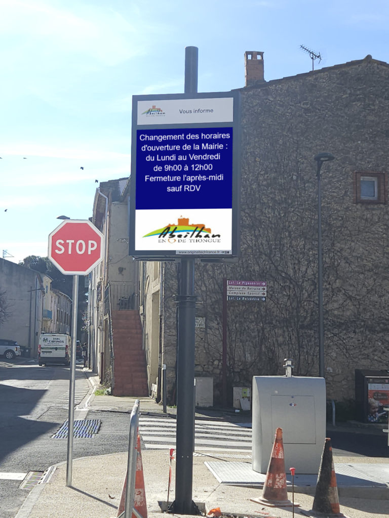 Commune d’Abeilhan (34290 Hérault) – Installation d’un panneau Video Line LED P4.8 double face LEDS couleurs.