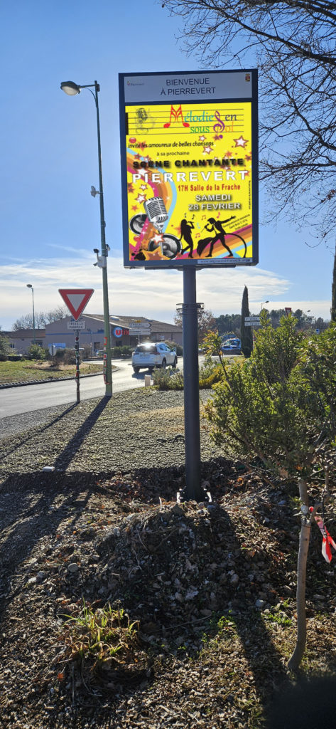 Commune de Pierrevert (04860 Alpes de Haute-Provence) – Installation d’un panneau Video Line LED P3.9 simple face LEDS couleurs.